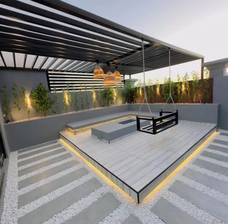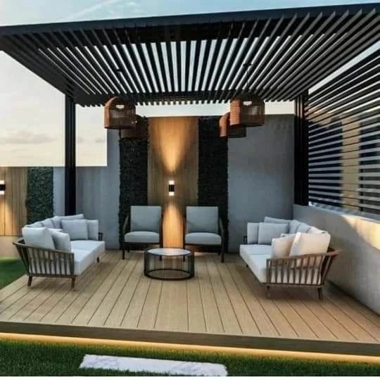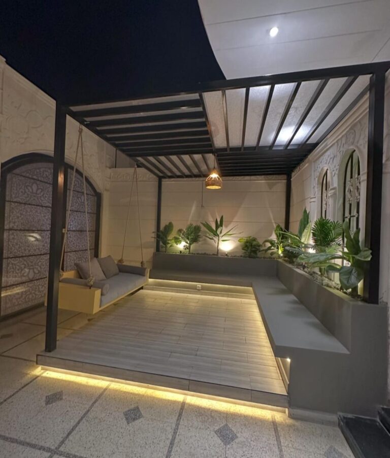 وتلعب المظلات والبرجولات دورًا مهمًا في توفير الظل والحماية من أشعة الشمس، مما يجعل الجلسات الخارجية صالحة للاستخدام في مختلف الأوقات. كما يمكن إضافة أنظمة الإضاءة الخارجية بعناية لإبراز جمال الجلسة خلال المساء وخلق أجواء دافئة ومريحة. ولا يمكن إغفال دور الأرضيات المناسبة، سواء كانت خشبية، حجرية، أو عشب صناعي، في استكمال التصميم بشكل متكامل.