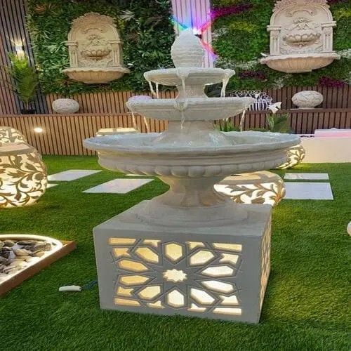 مواد متينة: استخدام زجاج، حجر طبيعي، أو مواد مقاومة للعوامل الجوية لضمان طول العمر.