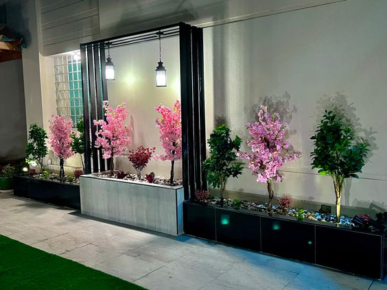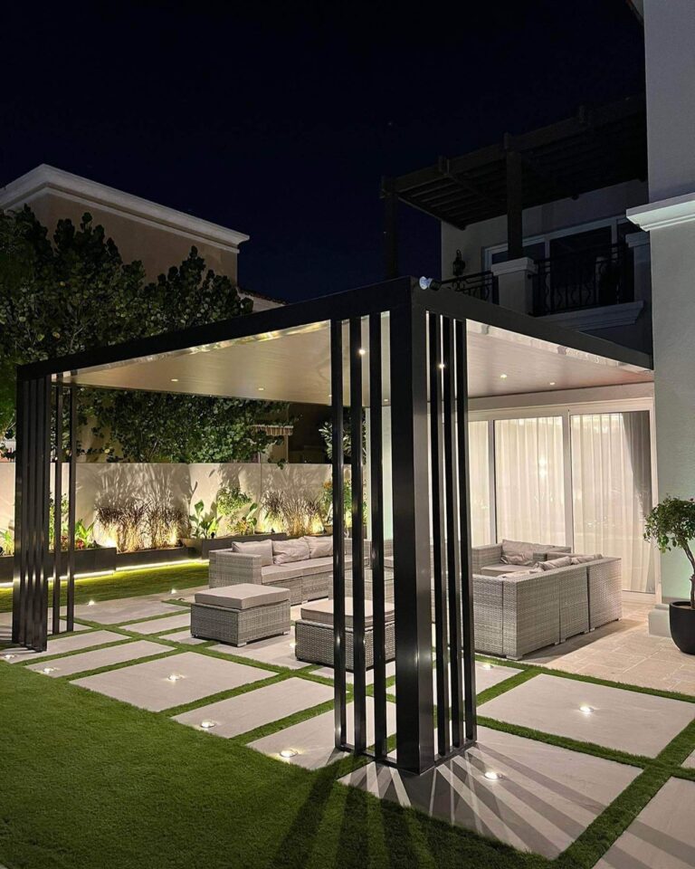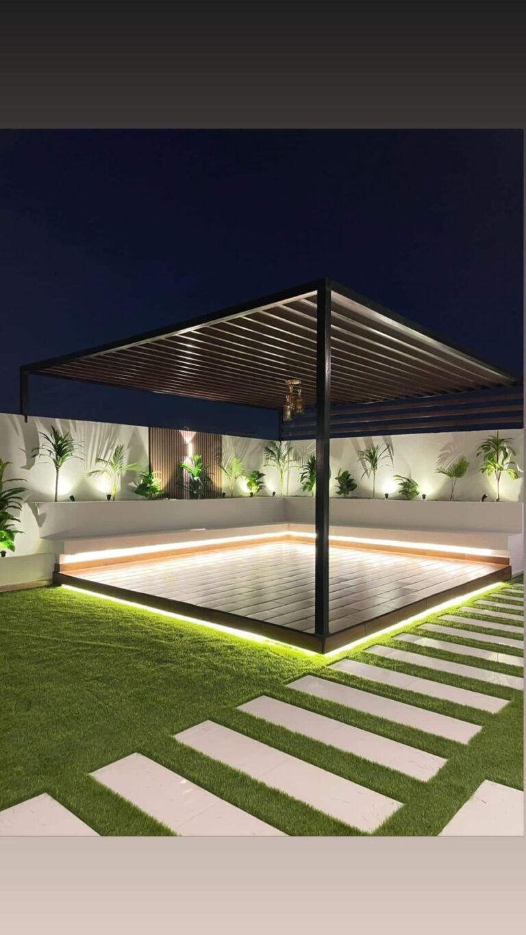4. تنسيق مع باقي عناصر الحديقة: العشب الطبيعي أو الصناعي، النباتات، والأحواض الزراعية لتعزيز الجمالية الكاملة.